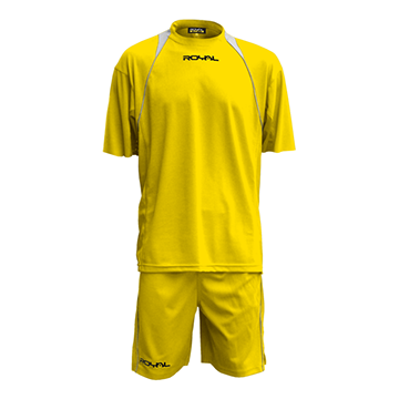 Equipación futbol ANDRÓMEDA. Cuello redondo. Tejido transpirable agradable al tacto y de fácil secado. Camiseta con líneas decorativas contrastada. Pantalón a juego mismo color con líneas decorativas. Tejido dynamic stretch.