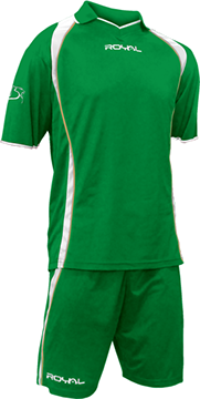 Equipación futbol APOLO. Cuello tipo polo en pico. Tejido transpirable agradable al tacto y de fácil secado. Camiseta con líneas decorativas contrastada. Pantalón a juego mismo color con líneas decorativas.