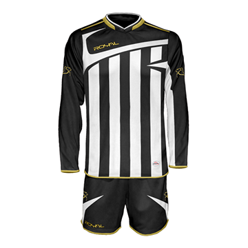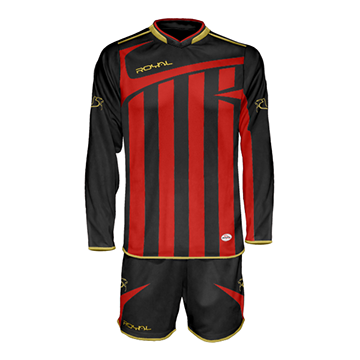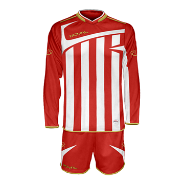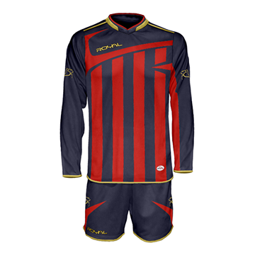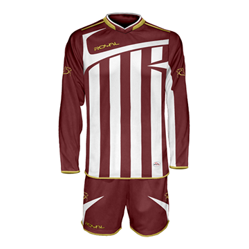 Equipación futbol ARMOR L/S. Cuello de pico. Tejido transpirable agradable al tacto y de fácil secado. Camiseta rayada y contrastada en colores. Pantalón a juego mismo color con líneas decorativas. Tejido dynamic stretch.