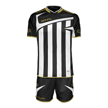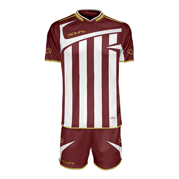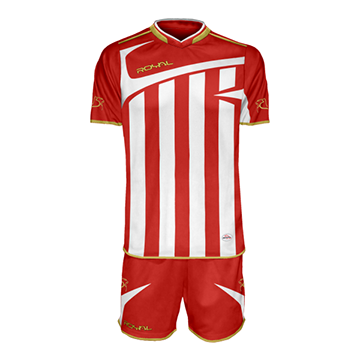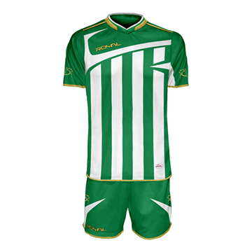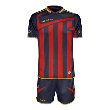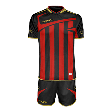 Equipación futbol ARMOR. Cuello de pico. Tejido transpirable agradable al tacto y de fácil secado. Camiseta rayada y contrastada en colores. Pantalón a juego mismo color con líneas decorativas. Tejido dynamic stretch.