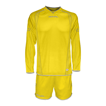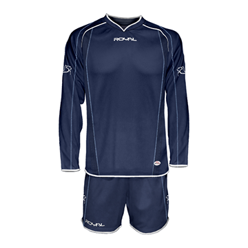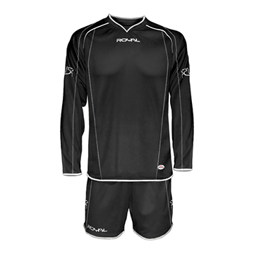 Equipación futbol ZEUS M/L. Cuello de pico. Tejido transpirable agradable al tacto y de fácil secado. Líneas decorativas finas en blanco. Pantalón a juego contrastado. Tejido dynamic-stretch.